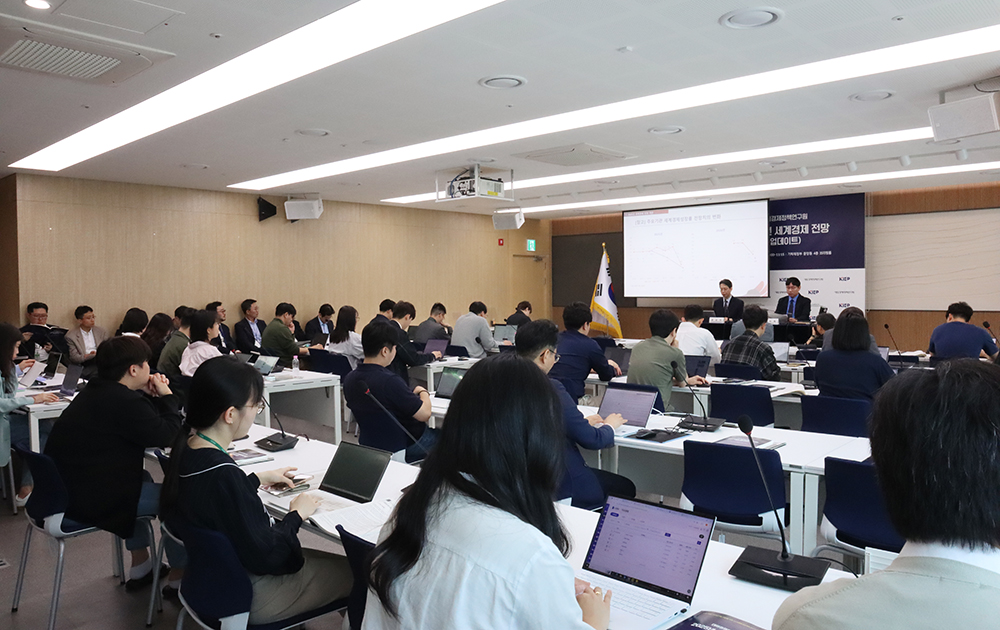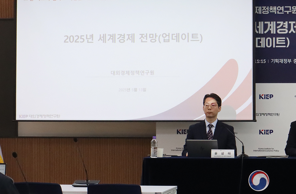 대외경제정책연구원(KIEP)은 2025년 5월 13일(화) 정부세종청사 기획재정부 4층 브리핑룸에서 “2025년 세계경제 전망(업데이트)” 발표를 위한 ‘2025 상반기 기자간담회’를 개최하였다. 정부포탈 e-브리핑을 통해서도 온라인 생중계된 이번 간담회는 지난해 11월 발표한 올해 세계경제 성장률 전망치를 수정·발표하고, 당면한 글로벌 현안에 대해 논의하는 자리였다.