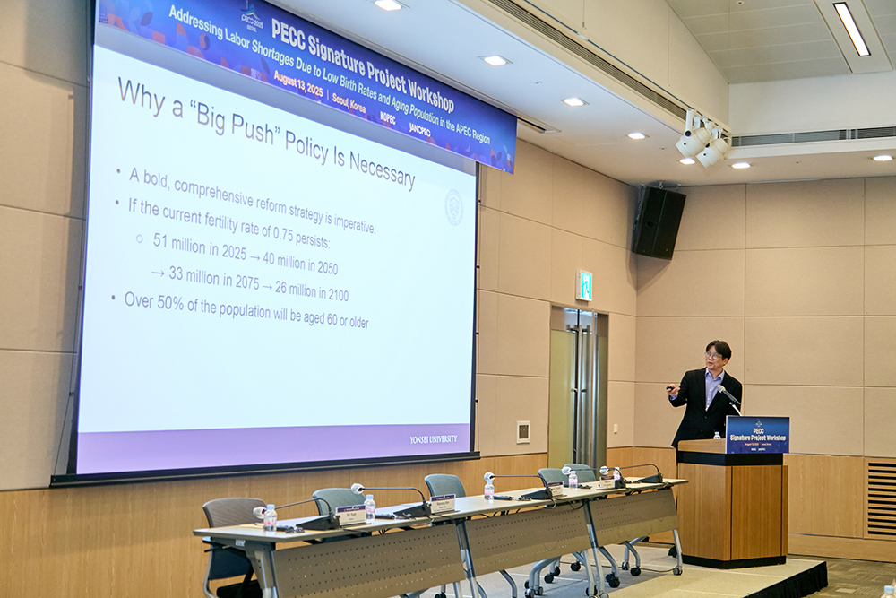The Korea Institute for International Economic Policy (KIEP) and the Federation of Korean Industries (FKI) co-hosted the Pacific Economic Cooperation Council (PECC)* Signature Project Workshop on Low Birth Rates and Population Aging on August 13th, 2025, at the FKI Conference Center in Seoul.