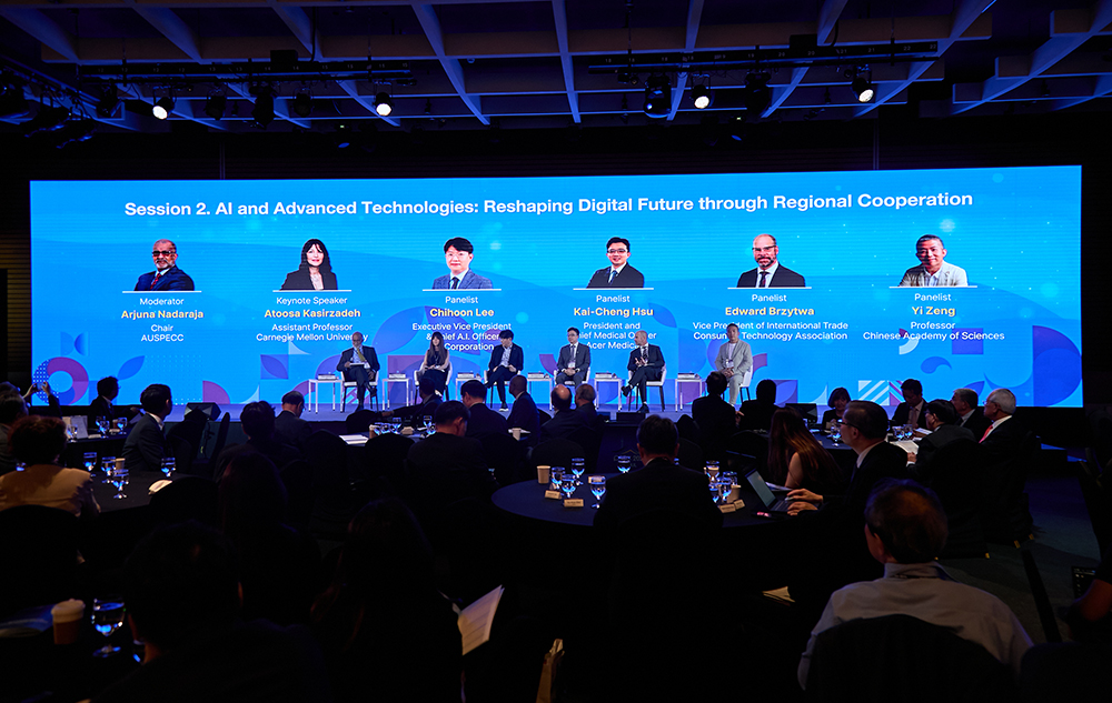 Session 2, moderated by Arjuna Nadarajah, Chair of the Australian National Committee for PECC (AusPECC), featured Atoosa Kashirzadeh, Assistant Professor at Carnegie Mellon University, on “Artificial Intelligence (AI) and Advanced Technologies: Reshaping Digital Future through Regional Cooperation.” Panelist Kai-Cheng Hsu, President and Chief Medical Officer of Acer Medical, emphasized that AI in healthcare should realize social value beyond technological excellence, proposing a vision for the Asia-Pacific to become a global model through improved health equity and regional cooperation.
